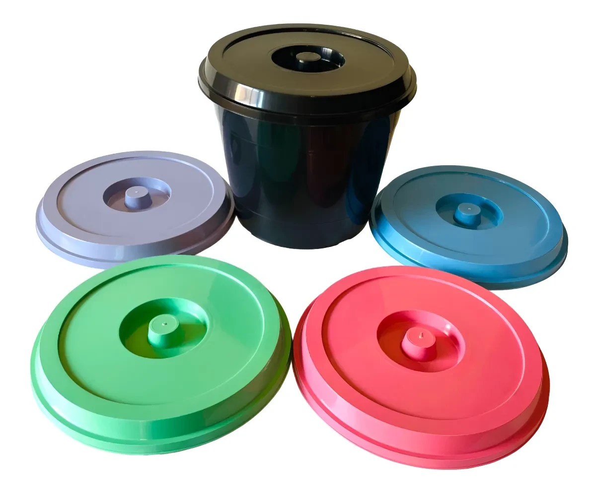 TACHO DE PLASTICO NEGRO DE 7 LITROS CON TAPA DE COLOR