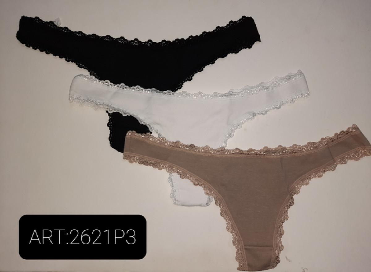 PACK X3 LESS ALGODON CON PUNTILLA - COLOR: (BLANCO + NEGRO + VISON )