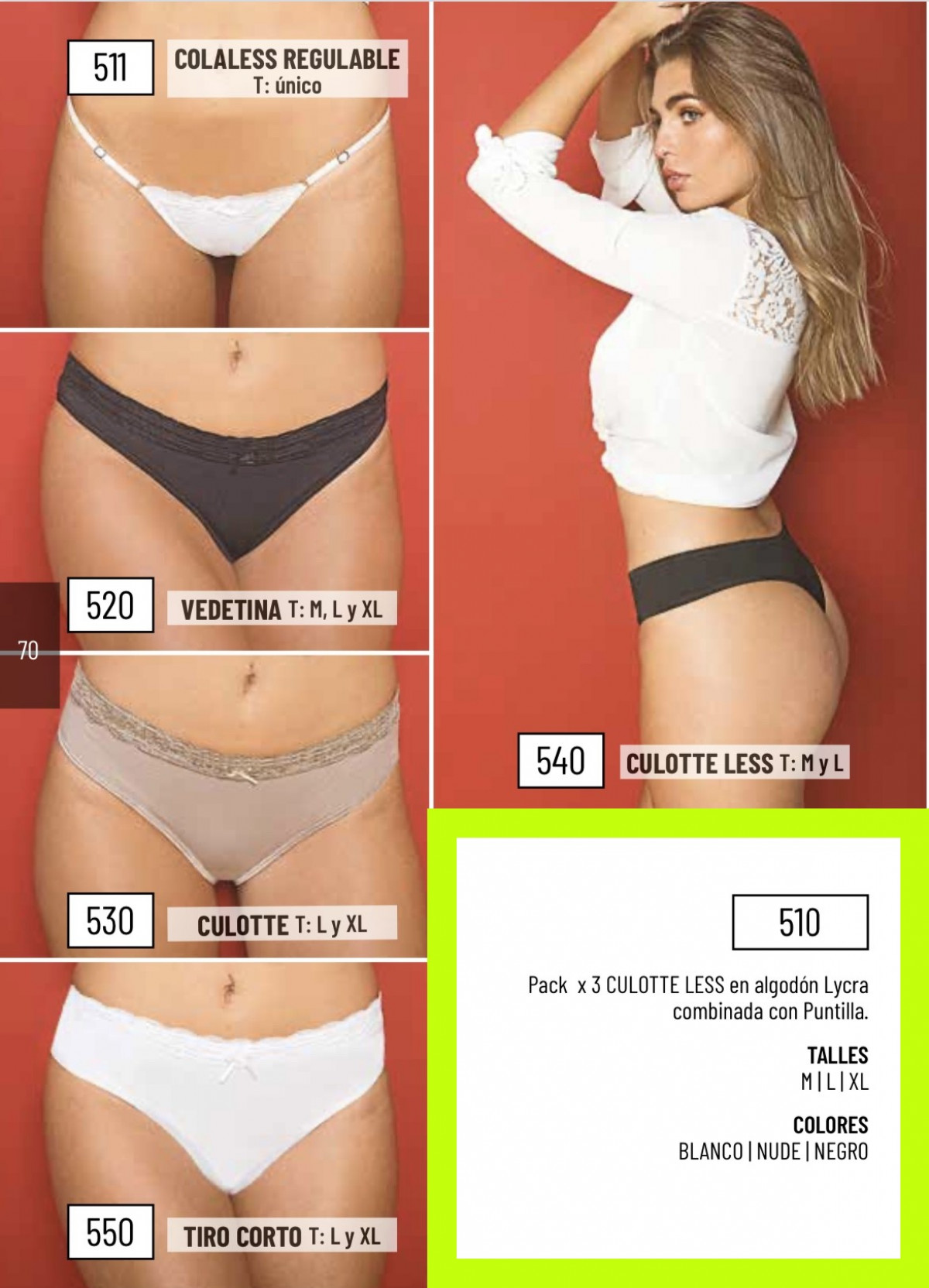 PACK X3 COLA LESS EN ALGODON Y LYCRA COMBINADA CON PUNTILLA - TALLE XL - COLORES: (BALNCO + NUDE + NEGRO)