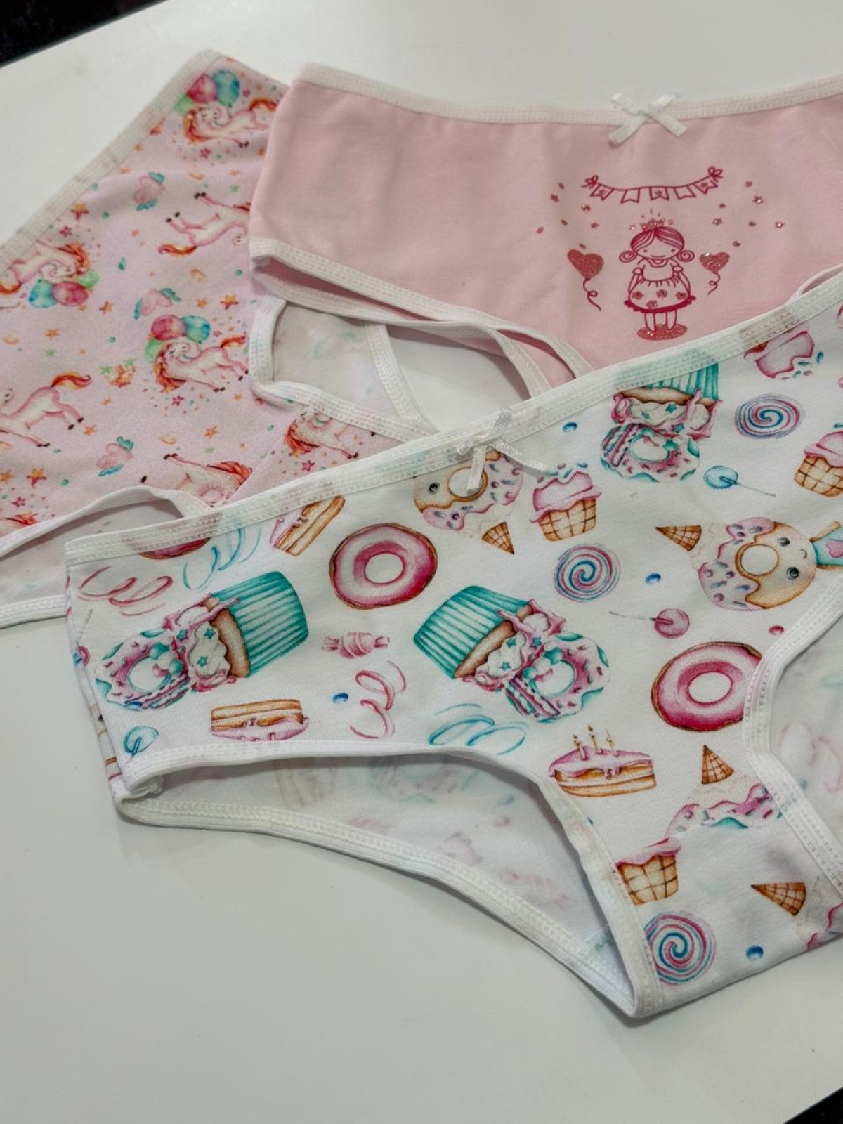PACK X3 CULOTTE DE NENA DE ALGODON Y LYCRA ESTAMPADO Y LISO CON ESTAMPA